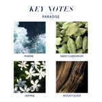 • LUXURY HOTEL SCENT - A sensory journey to a floral aquatic paradise. It's like stepping onto a dew-kissed beach at dawn, greeted first by the spicy-sweetness of cardamom, then swept away by a wave of marine freshness interlaced with jasmine's opulent bloom, finally nestled on a bed of rich, woody notes evocative of a verdant seashore forest.